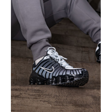 Eni aici, din nou cu voi. Astăzi vorbim despre street style. Am ales Nike Shox TL în varianta negru, cu accente gri și albe care lovesc fix unde trebuie – minimalist, dar agresiv.