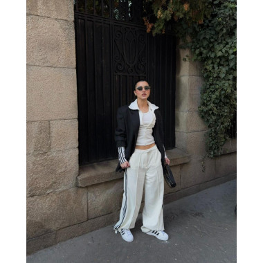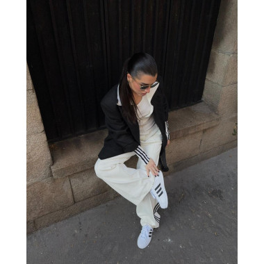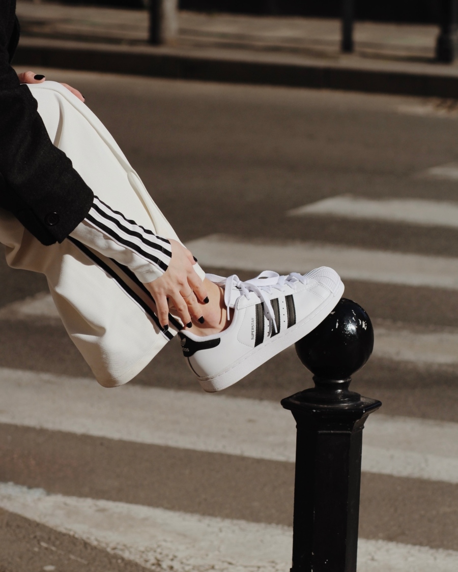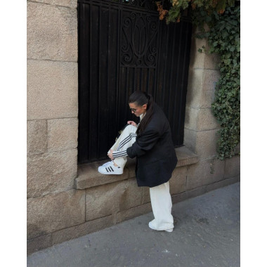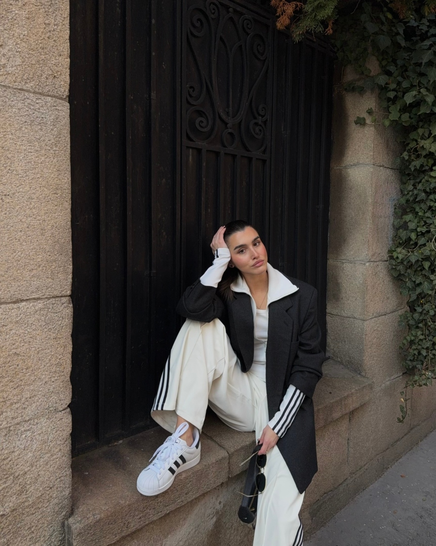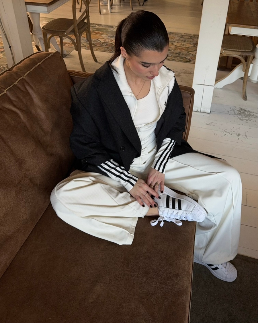 Îmi plac ținutele curate. Alb și negru. Linii clare. Contrast care nu are nevoie de explicații. De aceea i-am purtat cu pantaloni wide-leg și un blazer oversized. Sport × structură. Stradă × rafinament. Echilibrul ăsta contează pentru mine. SuperStar fac parte din el.